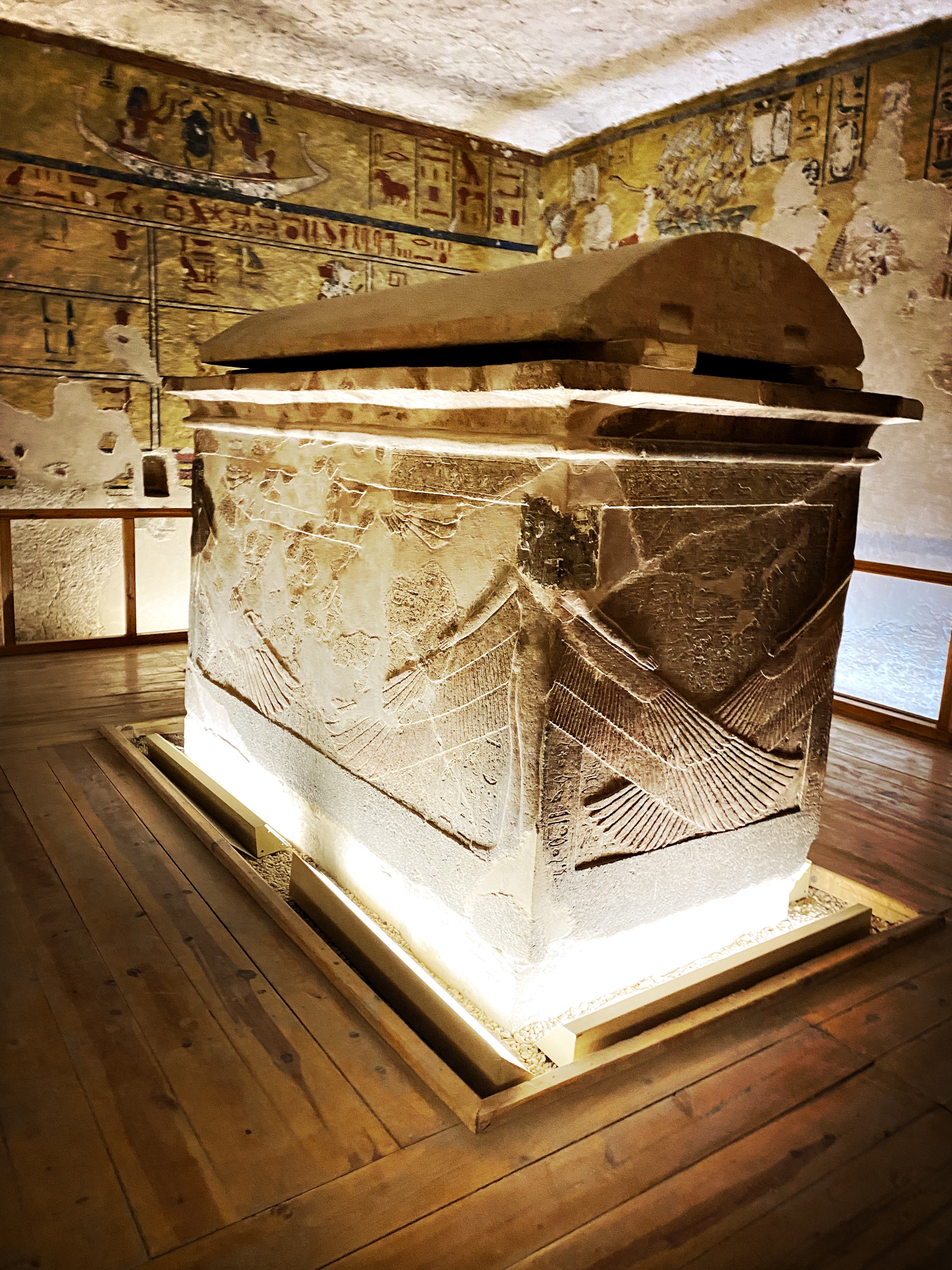 Arrivés en bas, il ne reste que le sarcophage externe, le reste des trésors, ainsi que la momie, ont été transférés au Musée du Caire. Mais c’est vraiment impressionnant de descendre si bas dans le sol pour découvrir une demeure éternelle. C’est un travail pharaonique vraiment!
