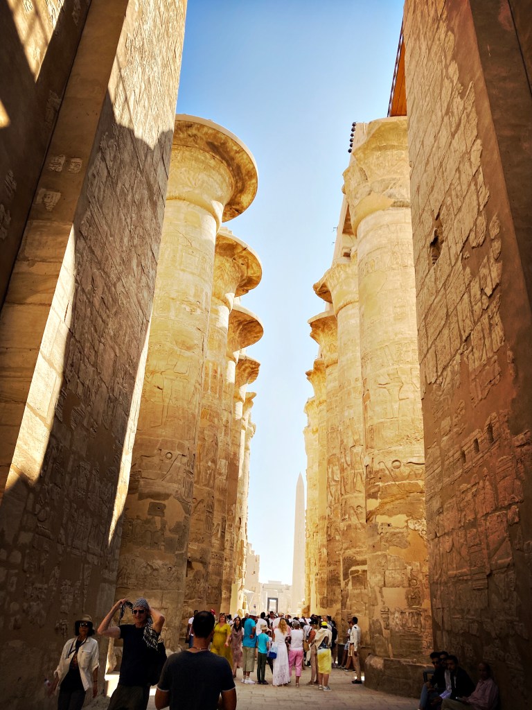 Nous avons donc commencé avec Karnak. Principal lieu de culte du Nouvel Empire, c’est la résidence terrestre d’Amour-Rê, divinité majeure d’Egypte. Ce temple a été construit il y a 40 siècles et modifié par le différents pharaon sur plus de 2000 ans.