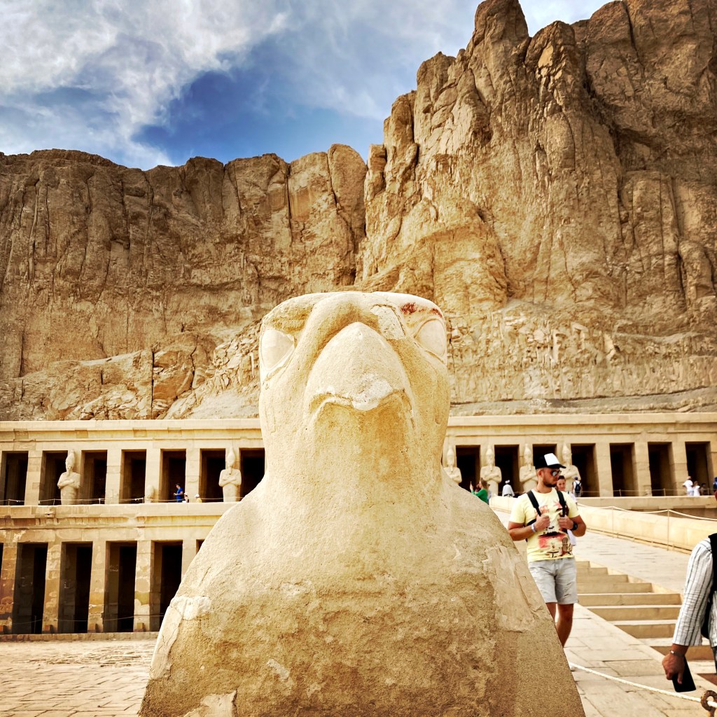La Vallée de Rois ou la grande nécropole des Pharaons est l’endroit où les Pharaons du Nouvel Empire (1550-1069 av. J.-C.) ont été enterrés. 63 pharaons y sont enterrés, mais 15 sont encore à découvrir! Nous avons commencé la visite avec le Temple funéraire d’Hatshepsout.