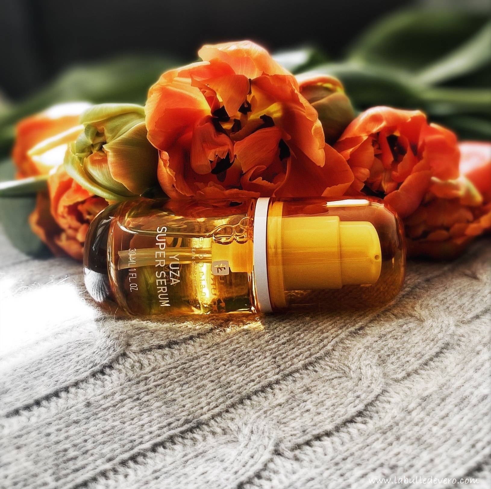 La formule de ce sérum est ultra légère, ultra liquide, et c’est normal, car il se veut comparable à un jus de yuzu, fraîchement pressé, et appliqué directement sur la peau. Il va donc la nourrir et la protéger du desséchement tout en l’aidant à se protéger des agressions extérieures. On y trouve encore un probiotique qui va maintenir l’équilibre cutané de la peau et ainsi préserver l’hydratation de la peau.