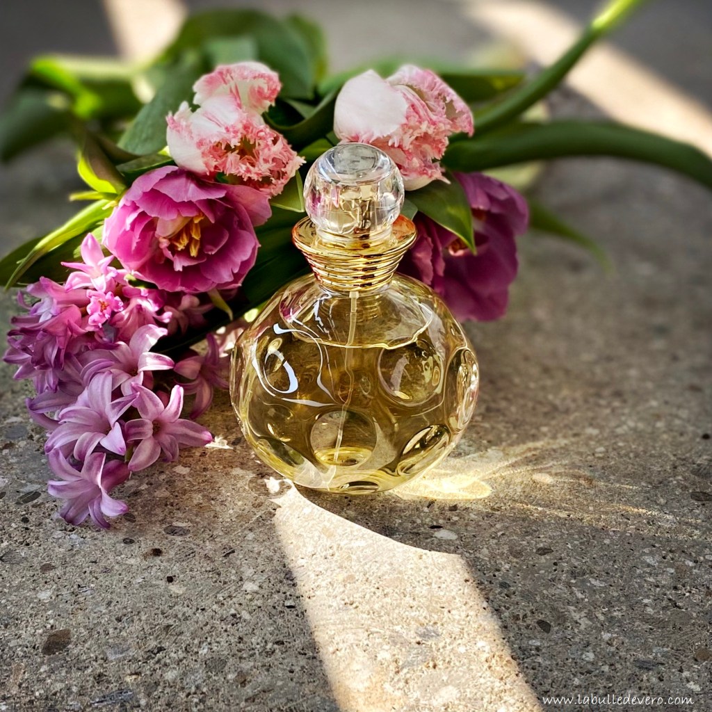 Oh la la! Encore une grosse semaine qui se termine. Je voudrais être encore plus présente pour vous raconter tout cela, mais le rythme – et cela est bien normal sur une prise de poste – est très intense! En réalité, je manque plus de lumière pour faire mes photos que de temps pour écrire mes articles. Mais heureusement entre le home office et les jours qui n’en finissent pas de grandir, je trouve des solutions! Ce soir, je continue mon retour dans les parfums du passé avec Dolce Vita de Dior. Dans le passé à tel point que je ne suis même pas sûre que celui-ci existe encore, car je ne l’ai pas trouvé en magasin. Il a fallu que je le commande sur Internet. Il s’agit donc d’un parfum des années 90 et à cette époque, je piquais les parfums de ma mère qui n’achetait que du Dior: Dune, Addict et Dolce Vita. Je les ai tous portés et je les ai tous aimés. Mais en tant qu’adulte, et je les ai tous ressentis, c’est bien Dolce Vita que je préfère (mais en tant qu’ado, c’était Dune). Alors que raconte ce parfum dans son flacon qui pétille de joie? La marque a voulu lui offrir une personnalité forte entre les lumières italiennes délicieusement rétro et des notes boisées-fruitées d’une grande modernité. Et je ne le savais pas, mais le nez qui a créé ce parfum est Pierre Bourdon, qui a aussi créé Féminité du Bois de Serge Lutens ( Parfum qui fête ses 30 ans cette année et dont je vous parlerai aussi bientôt). J’ai lu que les deux parfums sont sortis à trois d’intervalle et que les spécialistes de la parfumerie verraient en Dolce Vita la version lumineuse de Féminité du Bois, en quelque sorte une version plus accessible et issu d’un univers moins torturé.