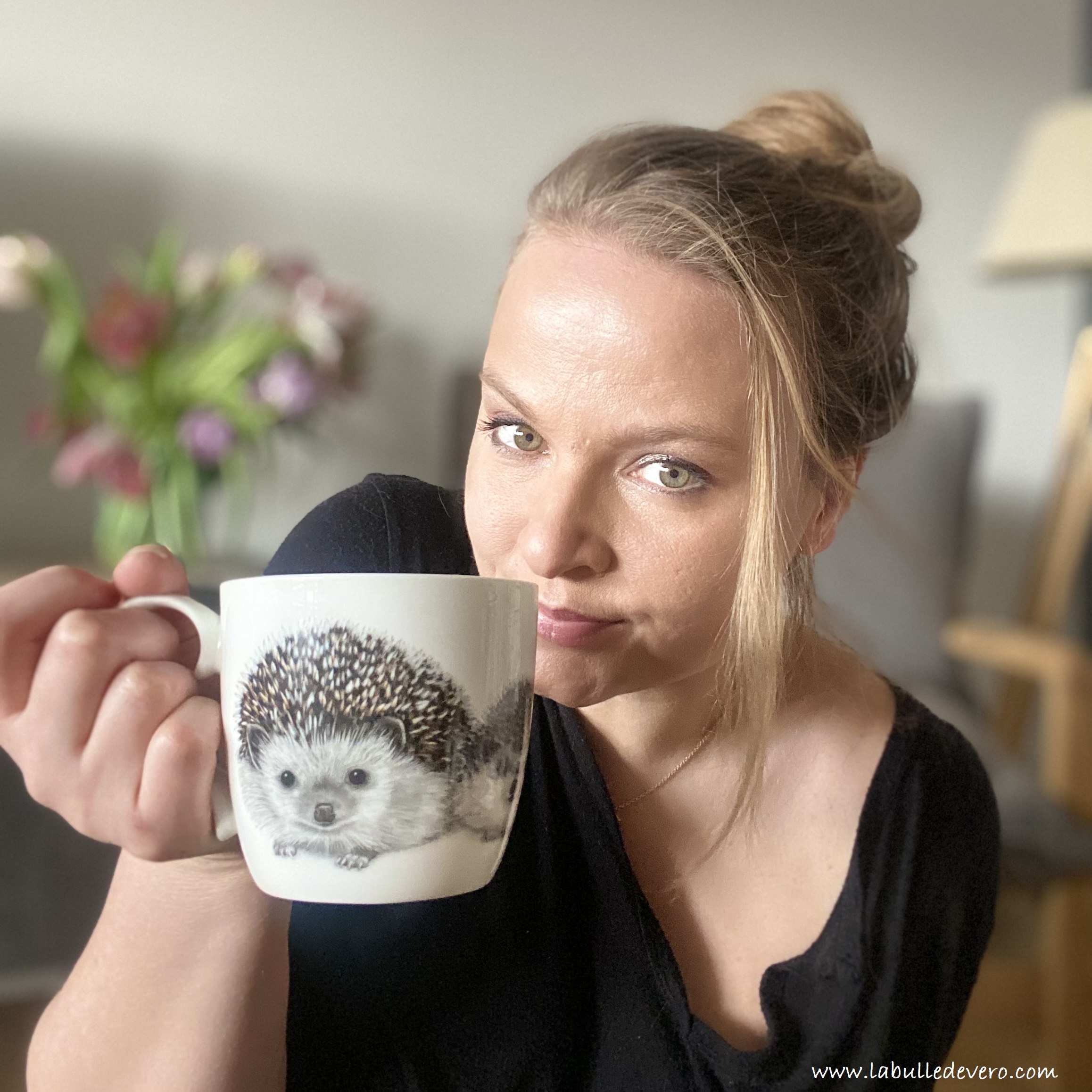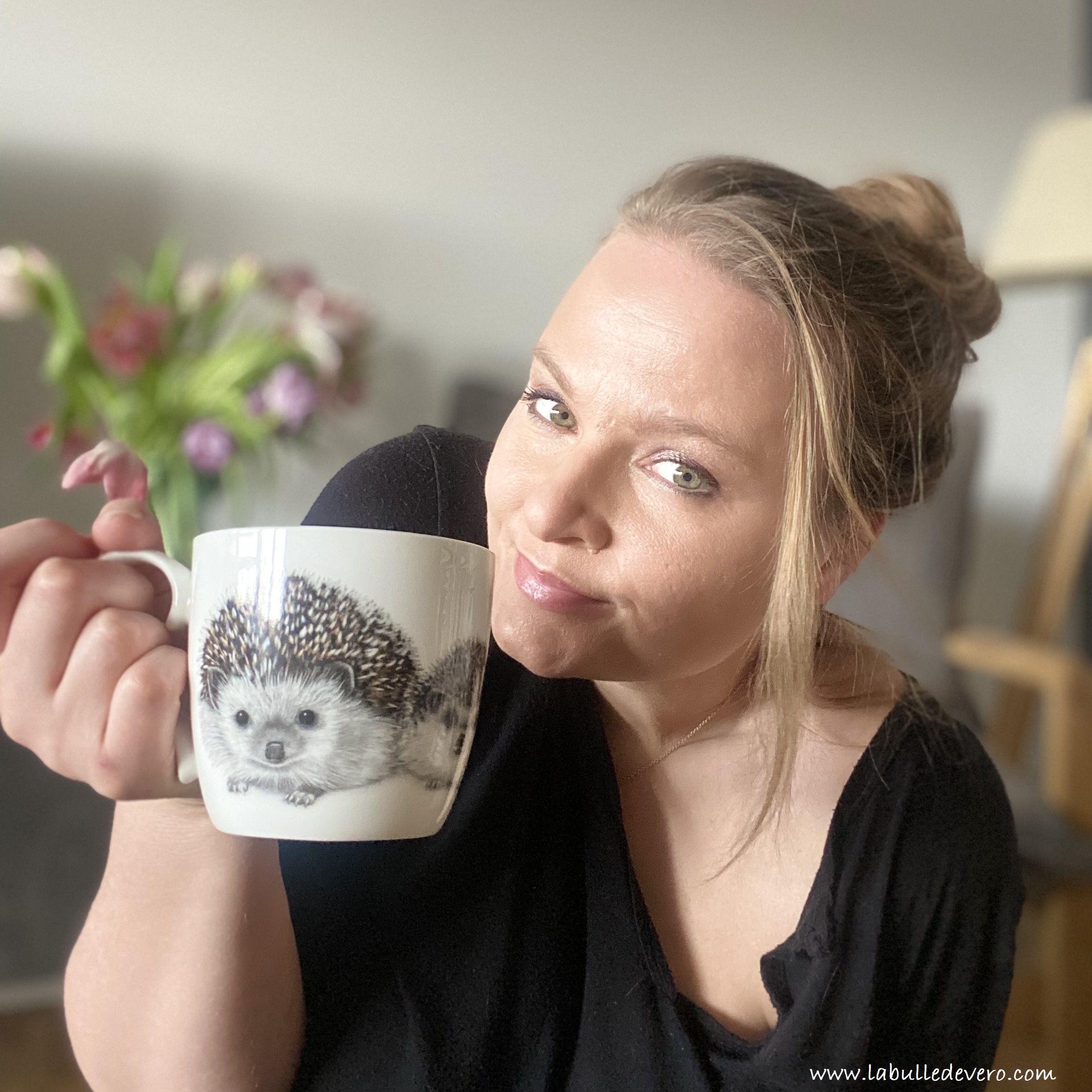 Dimanche matin! J’ai fait la marmotte ce matin et par conséquent ma journée commence bien plus tard, mais bien plus reposée également. J’en ai profité pour étrenner la jolie tasse que Barton m’a offerte! Une tasse ornée de Henri le Hérisson qui a été réalisée par Charlotte Nicolin. Cette artiste suédoise s’est spécialisée dans les portraits animaliers sur des objets de décoration d’intérieur.