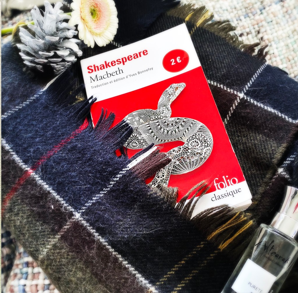 Je suis bien contente que le temps soit tout gris aujourd’hui, ainsi je n’ai aucune culpabilité de trainer un peu! Et cela me donne aussi du temps pour vous parler du livre que j’ai lu cette semaine: Macbeth! Vous en avez sûrement déjà entendu parler: il s’agit d’une tragédie de William Shakespeare qui se déroule dans l’Ecosse du Moyen-Âge et nous parle du règne mouvementé de Macbeth (1040-1057) en s’inspirant du récit de Raphael Holinshed dans ses Chroniques parues en 1587. En deux mots, le Général Macbeth, influencé par une prophétie et par son épouse, commet le crime de régicide pour s’emparer du pouvoir, mais la culpabilité le fait peu à peu sombrer dans folie.