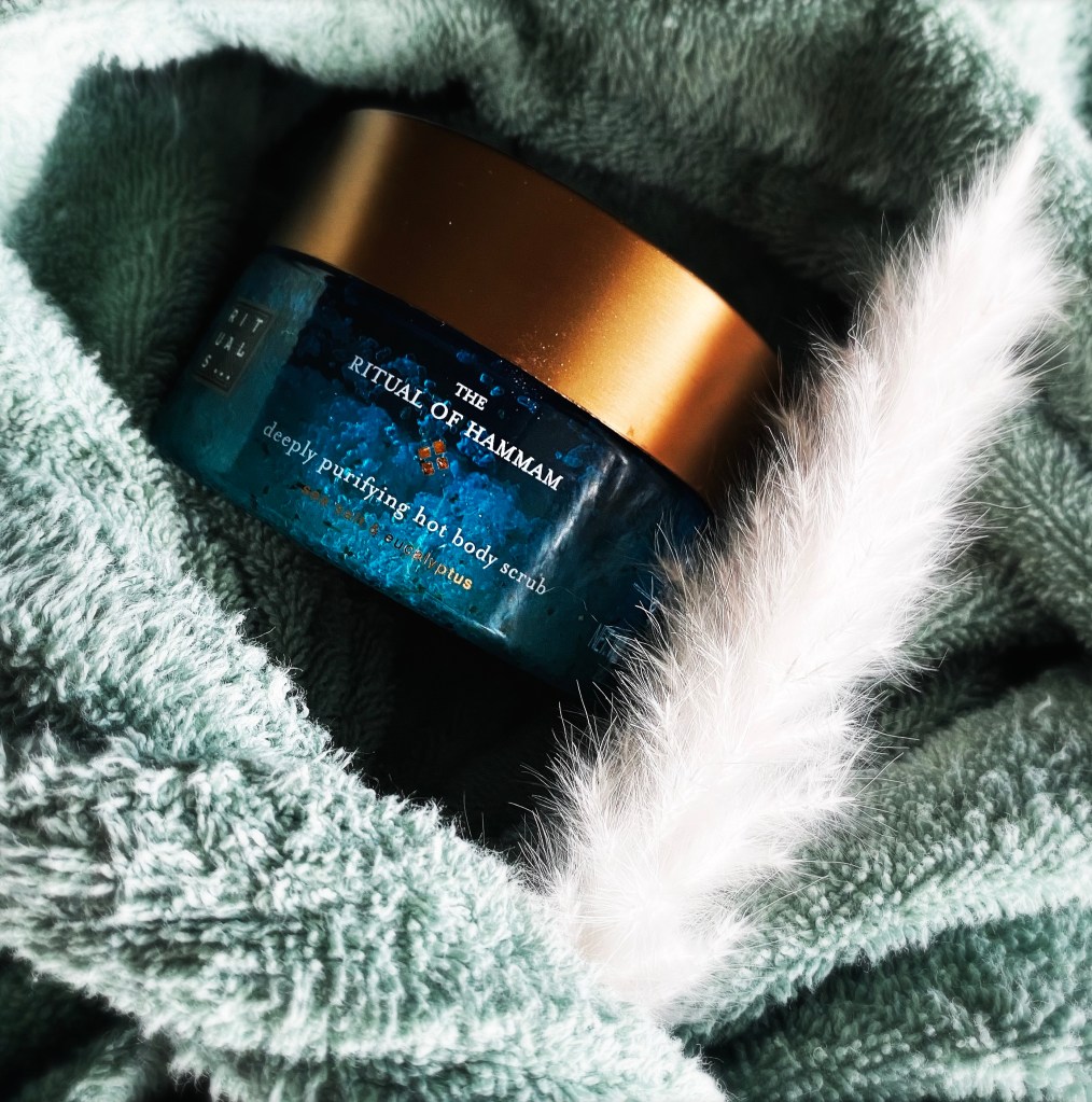 Finir le week-end en douceur en prenant un peu de temps pour soi! C’est mon plan avec un bon bain et un bon gommage pour avoir la peau toute douce! Vous le savez, je suis fan de gommage, et je viens de racheter le « Rituals of Hammam » de Rituals. il est super efficace, mais ce que je préfère c’est sa fragrance d’eucalyptus. Il suffit d’ouvrir le pot et on se retrouve projeter dans un sauna en Laponie. Cela fait un bien fou à la tête et au corps.