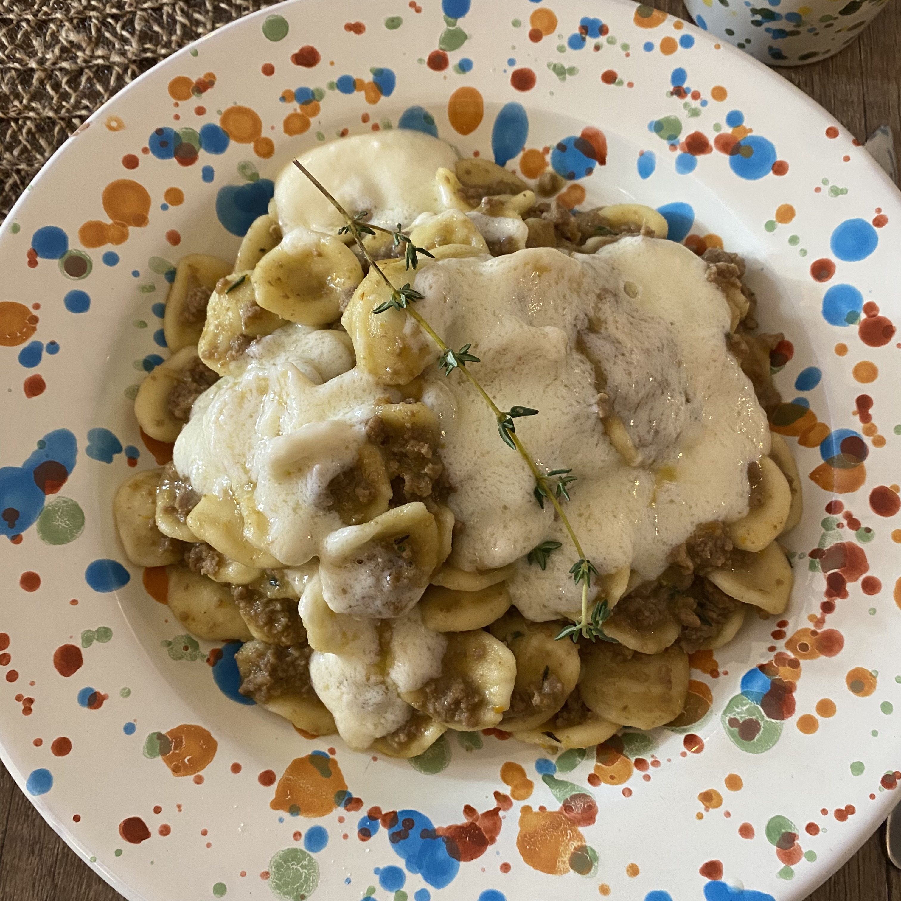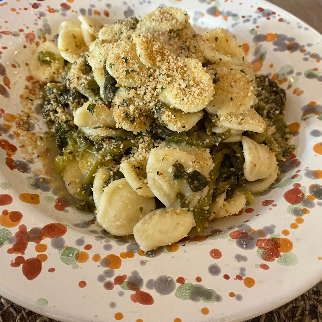 Mon amie a choisi les orecchiette alle cime di rapa e cacio dei poveri, des pates avec un légume, la cime, qui ressemble un peu à un épinard amer et de la panure de pain. Elle a tout mangé et s’est bien régalée! Et moi, j’ai choisi, les Orecchiette al ragù 36 ore e caciocavallo ou orecchiette avec sauce de viande 36 heures et caciocavallo.