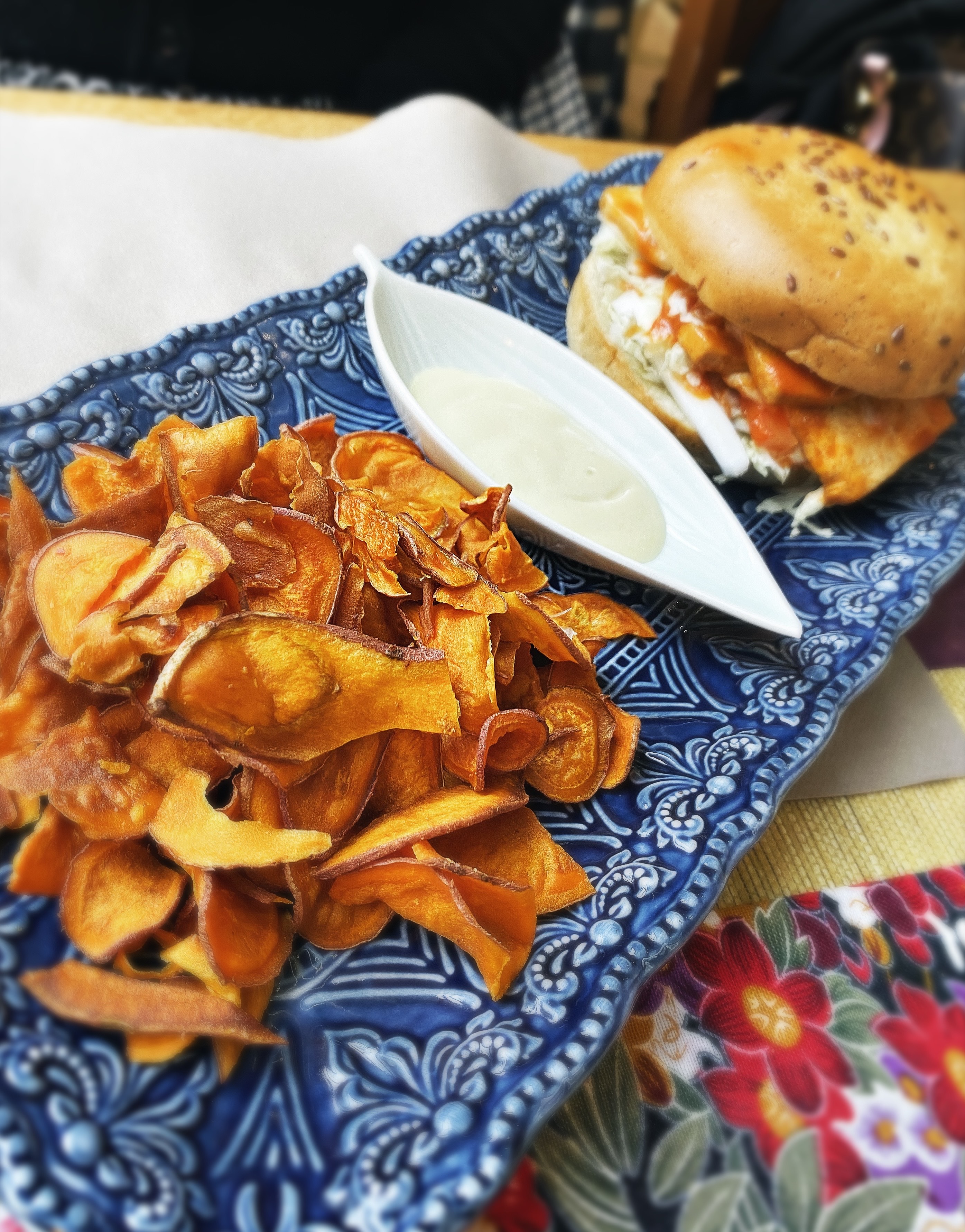 La carte propose aussi des burgers et je sais déjà que je vais y retourner, car tous les échos étaient super positifs: boeuf au cumin & thé rouge, gruyère, oignon et radis; poulet mariné au thé et grillé avec une sauce curry et ananas; porc mariné au thé oolong et caramélisé, chou chinois et chou rouge; Beignet de crevette, tomates et avocat et enfin végétarien, comme sur la photo, tofu sauté, pousses & germes, tomates et plein de légumes!