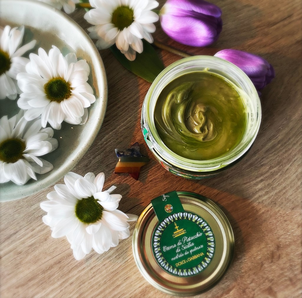 Il s’agit donc d’une crème à tartiner à la pistache. Cette création typique de la Sicile est le fruit d’une collaboration entre la confiserie sicilienne Fiasconaro et de la marque de haute couture Dolce&Gabbana – la même collaboration que pour la colombe. Un délice sur les tartines, mais aussi les tiramisus et sur une boule de glace. Bref… c’est délicieux et cela va avec tout!