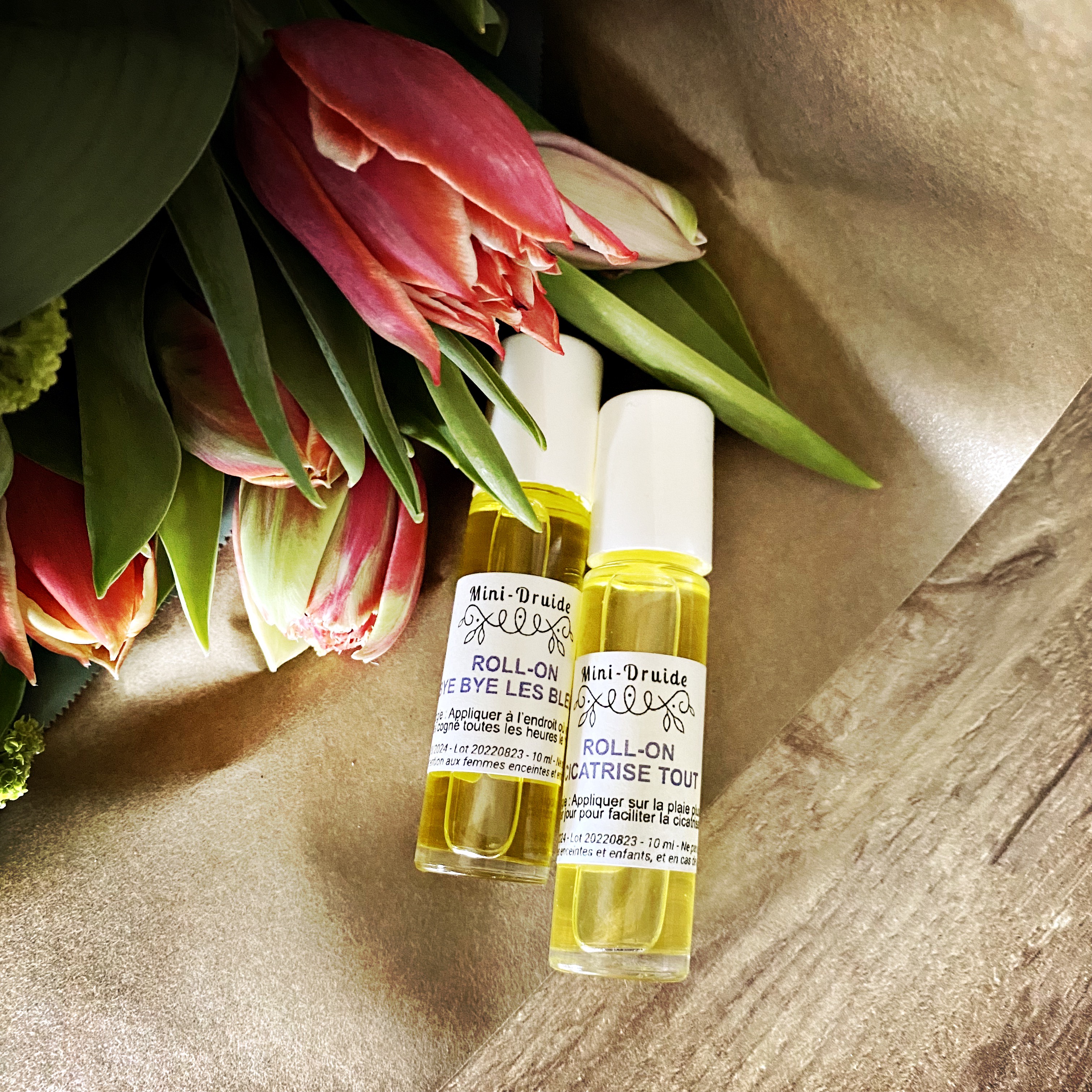 J’ai aussi reçu deux roll-on que je n’ai pas encore testés pour la cicatrisation et les bleus. Et moi… je suis Madame bleus! Je passe mon temps à me cogner partout car je suis trop distraite pour regarder où je vais. Donc… très utiles assurément et je vous en reparlerai sans aucun doute.