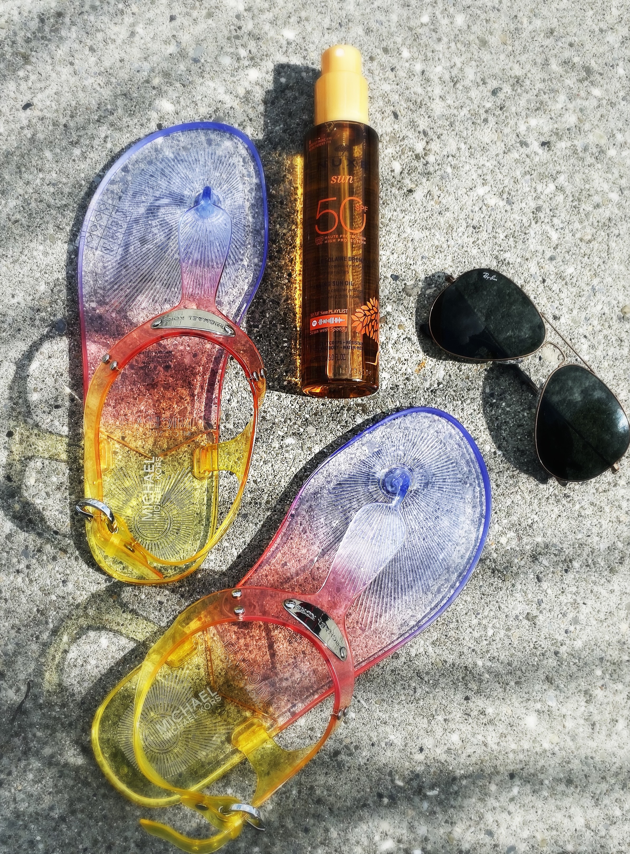Et qui dit tongs, dit soleil et donc SPF 50. Vous savez que je ne plaisante pas avec cela et que j’ai envie de frapper ceux qui ne se protègent pas correctement! Cette année, c’est forcément Nuxe qui va m’accompagner tout l’été et je ne me plains pas, car je suis dingue de cette marque pour laquelle je travaille à présent: les produits sont tops, les textures et les parfums sont ultra sensoriels et bien sur la protection est optimale.