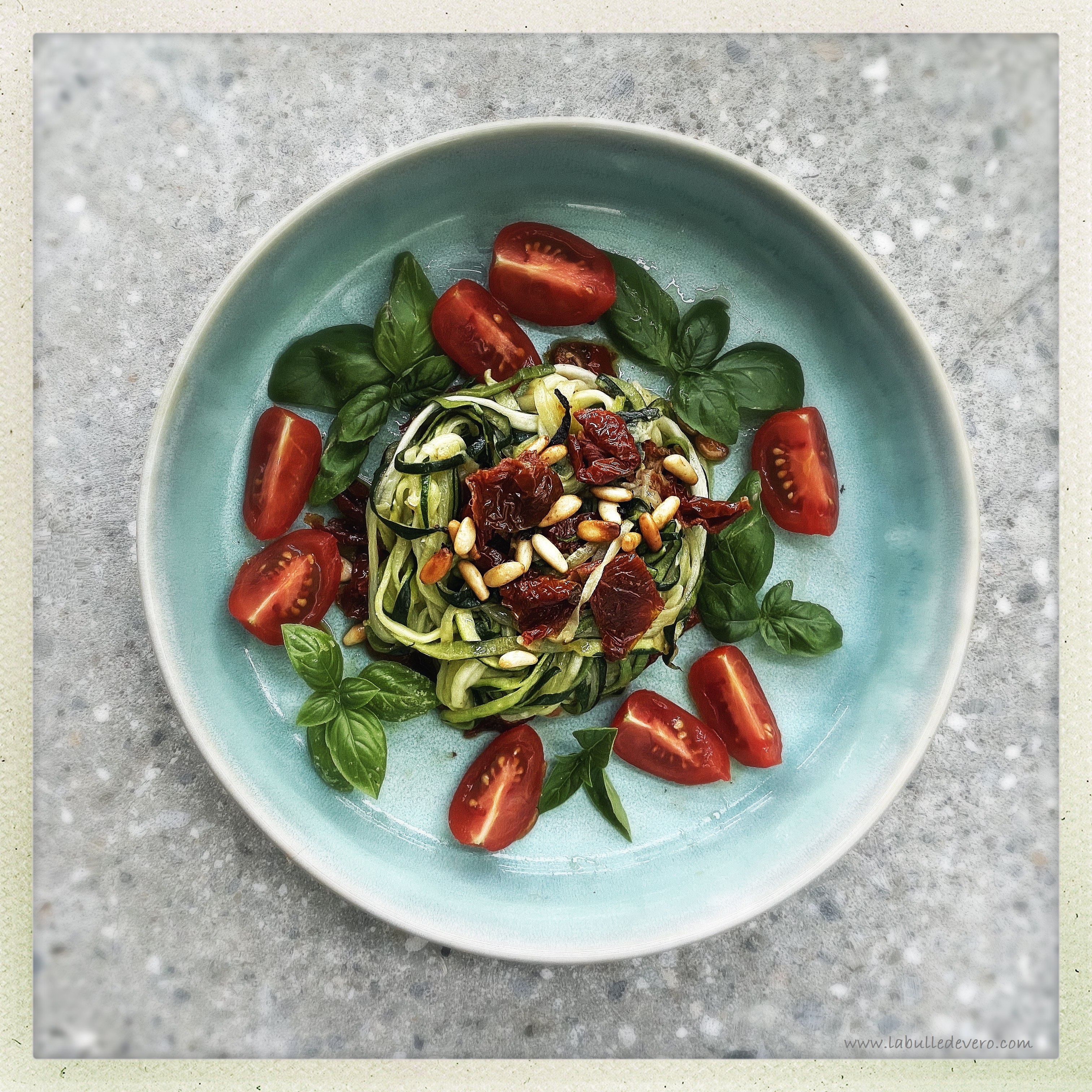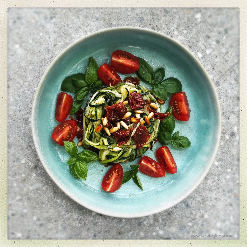 Spaghettis de courgettes aux pignons et tomates séchées